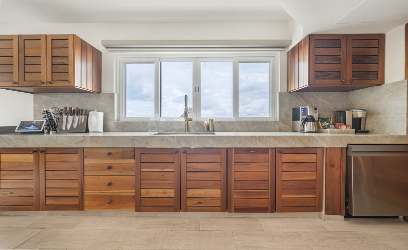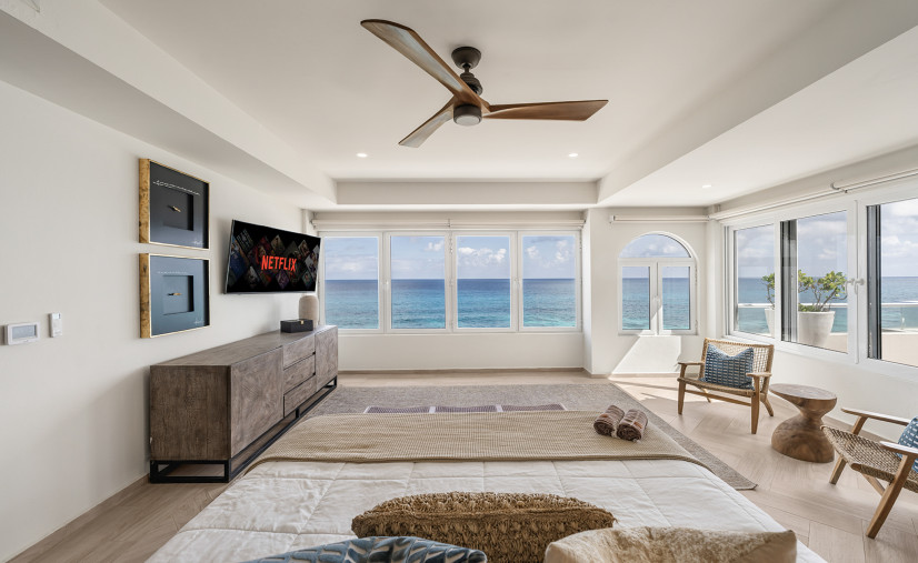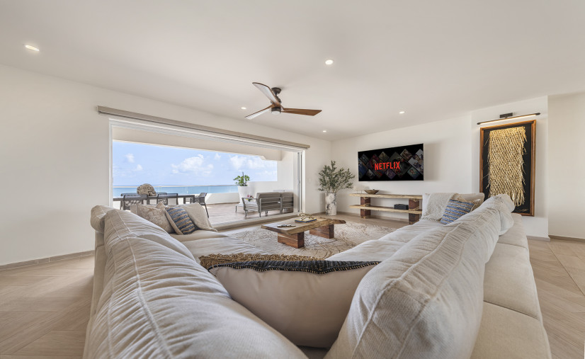 Casa de Vistas is the perfect choice for those looking for a private, peaceful vacation with a large group or a family. This penthouse is located at mid-island, with the best 360 degree views of the turquoise blue waters of the Caribbean Sea. Here you’re only a short golf cart or taxi ride from North Beach and the hustle and bustle of downtown Isla Mujeres. Isla 33 Resorts & Villas has 24/7 security and underground secure parking to park your golf cart.